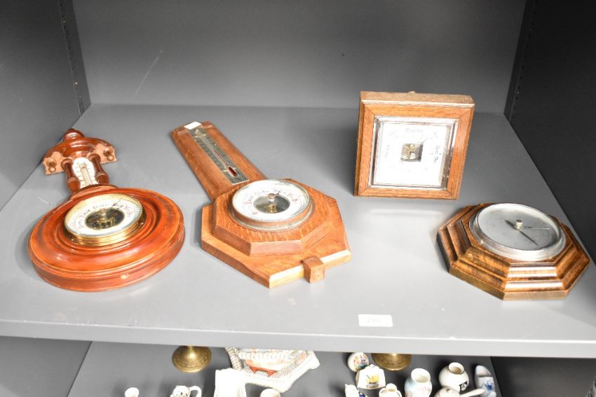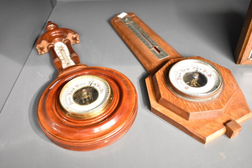 An early 20th century oak barometer having temperature gauge, L45cm, sold together with 3 other barometers, ( 4 )