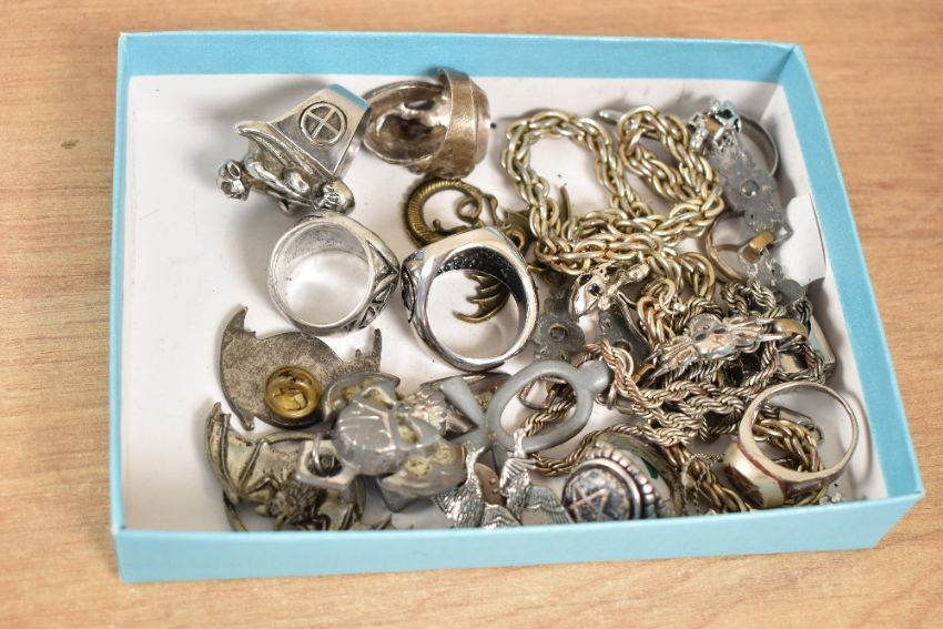 A small collection of white metal gothic jewellery, including statement pieces, rings and chains, etc