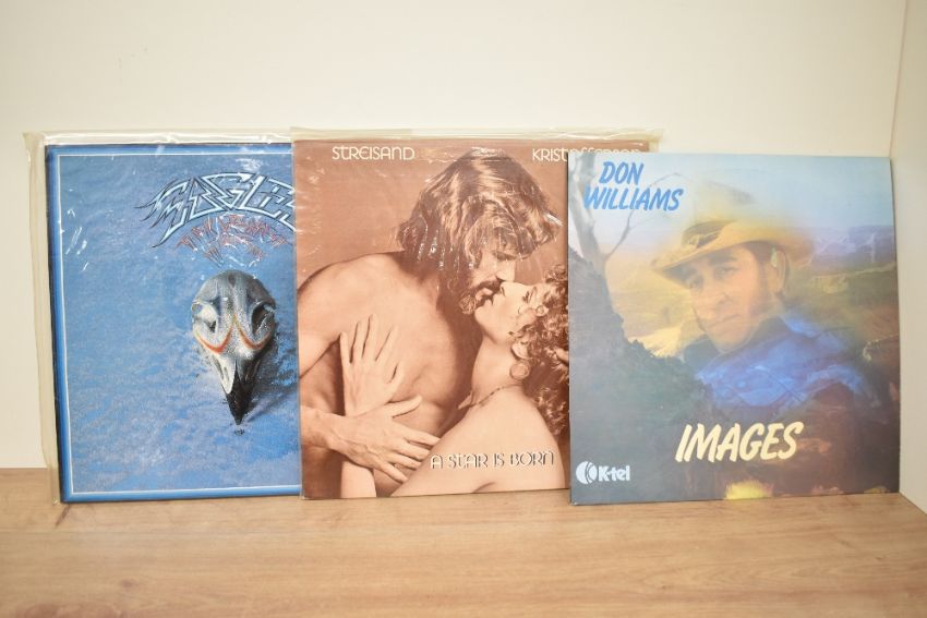 A box containing various records and sheet music, to include Dr. Hook, Don Williams, Diana Ross ect, approx 35 albums