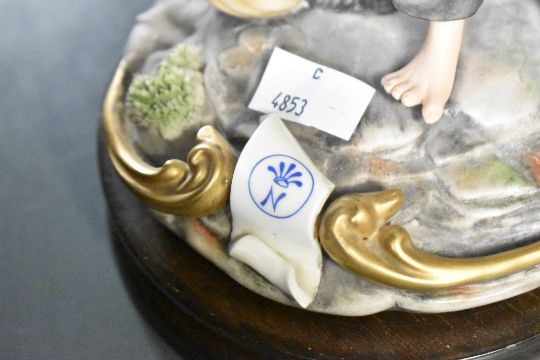 Two large vintage Capodimonte style figures depicting a male and female child amongst fruit trees, both measuring 31cm tall.
