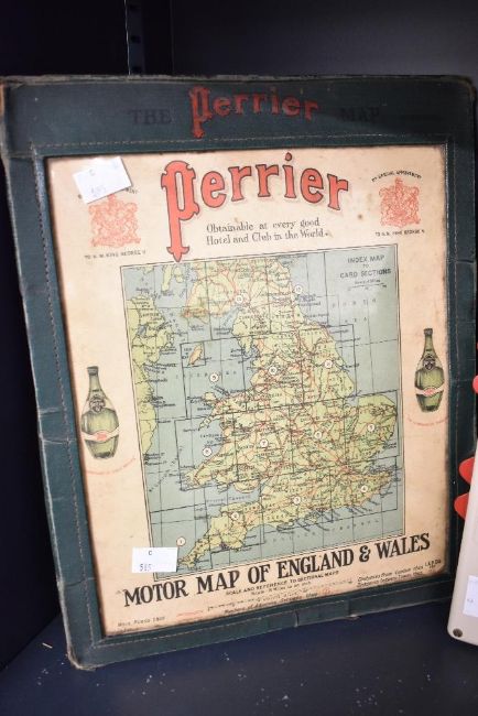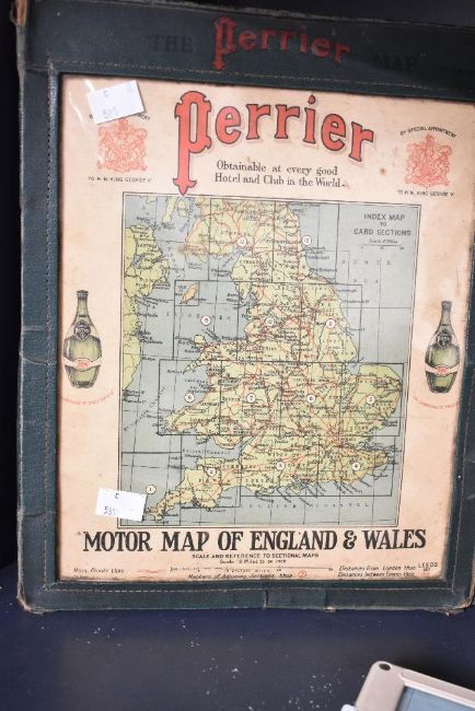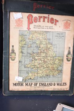 A vintage Perrier motor map of England and Wales in original sleeve, sold together with a pair of auto maptics and another map of Great Britian, (4)