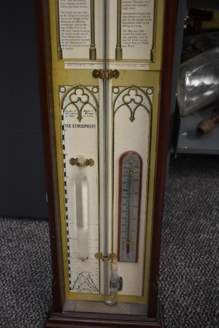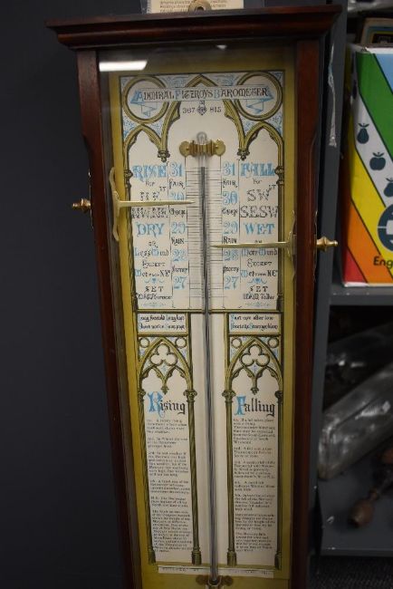 A mid-century Fitzroy barometer in mahogany case, having atmosphere and temperature gauge, model n657, H100cm