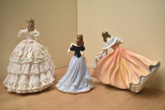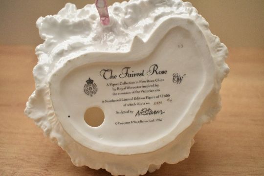 A group of three Royal Doulton bone china figurines comprising 'Elaine' HN 2791, 'Ann' HN 3259 and 'Lynne' HN 2329 sold alongside two Royal Worcester bone china figurines 'Happy Birthday' and limited edition 'The Fairest Rose' model number 11874/12500.