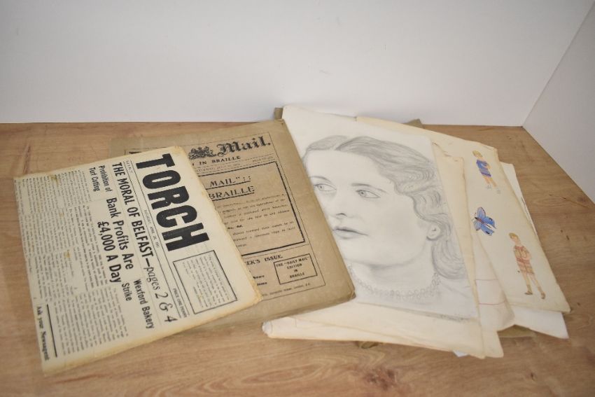 An early 20th century Daily Mail Edition in Braille, dated 1910, sold together with various pencil sketches ect.