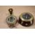 A Ross (London) brass military style compass, etched to the base, sold along with an Indian brass inlaid hardwood desk compass