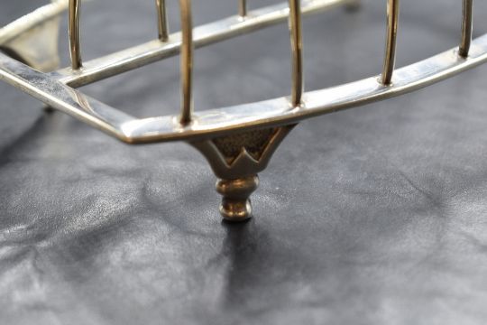 A George III silver toast rack, of rectangular form with rounded divisions, raised on four decorative legs, marks for London 1805, rubbed makers mark, 17cm x 7.5cm x 16cm, 235g