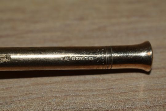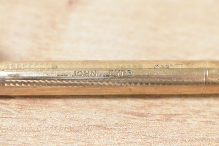 A 9ct gold Mabie Todd & Co Swan lever fill fountain pen and part propelling pencil, both engraved. The pen having Swan 2 14ct nib