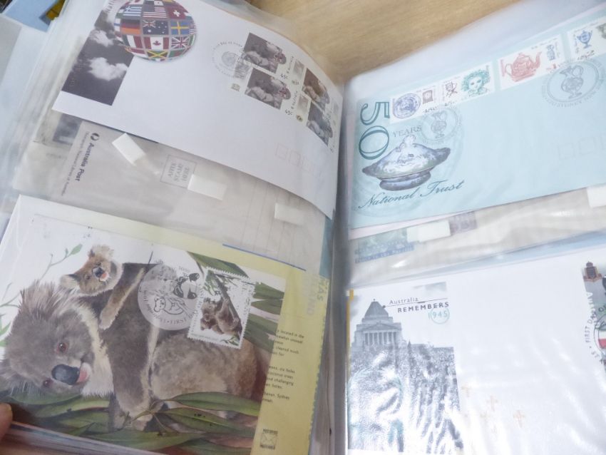 AUSTRALIA MODERN COLLECTION OF MNH SETS & COVERS 1980's-MID NOUGHTIES IN 4 VOLUMES 4 albums/folders of Australian material with items largely being from the 1980's-mid 2000's Mix of first day covers and flat MNH sets of which many are laying loose to the front of the covers. Fine looking lot, largely MNH, one album with M/M.