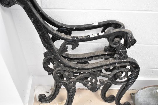 A pair of cast bench ends having lion mask arms