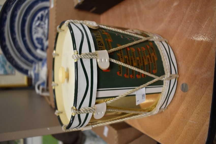 A vintage Green Howards Regimental drum ice bucket, a Neil J Rose sculpture 'Running Coyote' three Wade Tortoises, a glass cake stand, paperweight and a signed Anita Harris Art Pottery purse vase depicting The Potteries 'Homage to Lowry' pattern etc