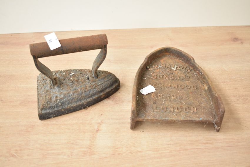 An early 20th century W. R. Hatton & Sons Ltd of London iron with stand, (2)
