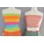 A collection of vintage ladies cotton summer wear, in bright stripes of pink, yellow, orange, greens and aqua; comprises a George jersey strapless tube top, size 10, a Nomads tiered skirt, size S/M, and a Nomads cotton panelled skirt, size M. Along with a coral scarf.