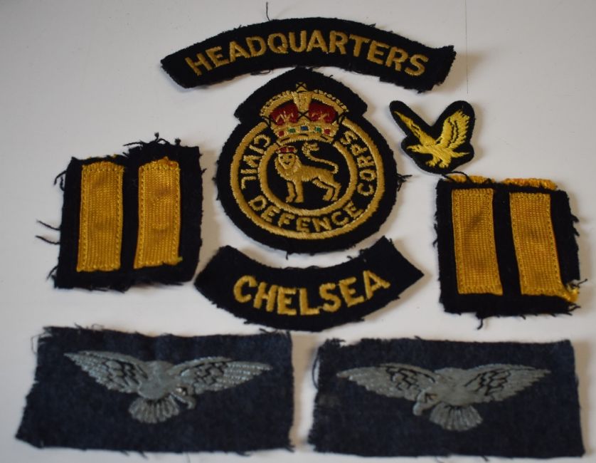 Military buttons, a small collection of twenty buttons of various Regiments, mostly King's Crown and comprising examples to Welsh Guards, Military Police, Lancashire Fusiliers, Royal Artillery, Honourable Artillery Company, 6th (warwickshire), Chinese Regiment, French Fire Brigade, Royal Canadian Engineers and others, sold together with an Air Training Corps cap badge, two original WW2 period Royal Air Force albatross patches, a WW2 period Civil Defence Corps cloth badge and Headquarters Chelsea shoulder patches.(Lot)