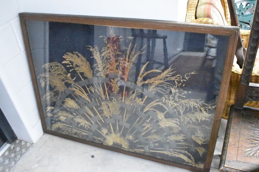An interesting Victorian glazed display of dried grasses , 94 x 127cm