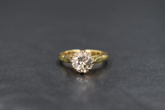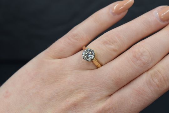 An 18ct gold diamond solitaire ring, the brilliant cut diamond being approx 1.5ct set in a raised eight claw mount on an 18ct gold loop, size J & approx 4.4g