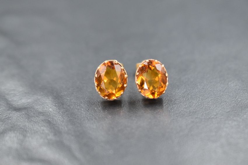 A pair of 9ct gold oval citrine stud earrings having claw set mounts, approx 2.5g gross