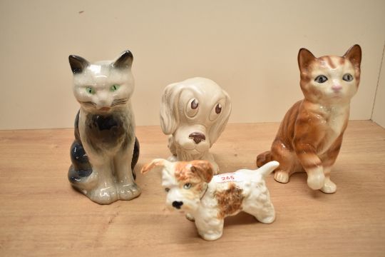 A ceramic terrier dog figure, L15cm, sold together with two cat figures and a dog, (4)