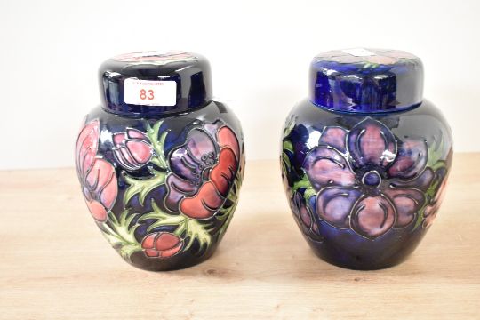 Two Moorcroft 'Anemone' pattern ginger jars with covers, having tube line decoration, impressed and painted marks to base, h15.5cm