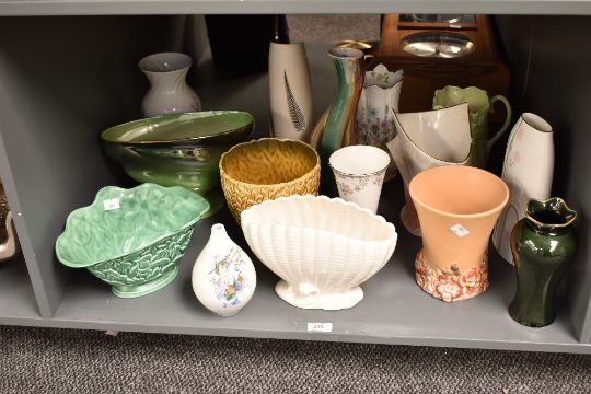 A Clarice Cliff 'My Garden' pattern vase, h17cm, sold together with a Rosenthal Bele Bachem vase and various other vases, (15)