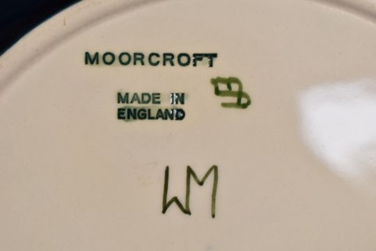 A Moorcroft pottery 'Anemone' pattern plate, having impressed and painted marks to base, w26cm, sold together with a similar plate, (2)