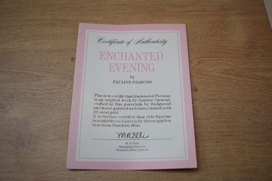 A group of six figurines comprising Royal Worcester limited edition 'Market Day' number 388/500, Franklin Mint porcelain 'Cinderella' and 'Lady Rose', Wedgewood porcelain 'Afternoon Promenade' complete with certificate of authenticity and two 'Enchanted Evening' one with certificate of authenticity.