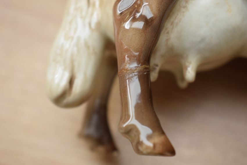 A Beswick Pottery Dairy Shorthorn Family comprising, A Beswick Pottery Dairy Shorthorn Bull CH. 'Gwersylt Lord Oxfrod 7th' model number 1504, a Beswick Pottery Dairy Shorthorn Cow CH. 'Eaton Wild Eyes 91st' model number 1510 with previous repair to back leg and a Beswick Pottery Dairy Shorthorn Calf, model number 1406C, all designed by Arthur Gredington all in a brown and white with shading gloss finish.