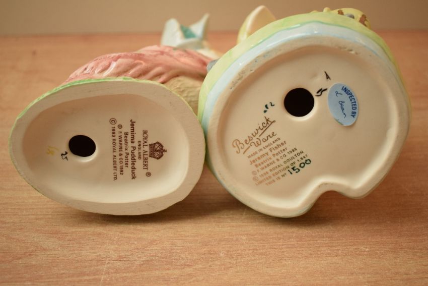 A Beswick Pottery limited edition 'Jeremy Fisher' number 1947/1500 sold alongside a Royal Albert bone china 'Jemima Puddleduck' study.