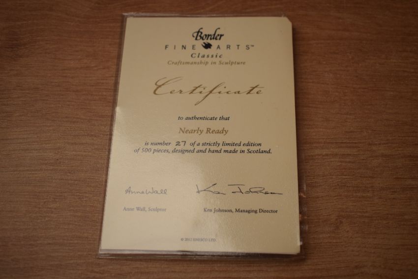 A limited edition Border Fine Arts figure group 'Nearly Ready' model number B1297, designed by Anne Wall, limited edition number 27/500, complete with certificate of authenticity.