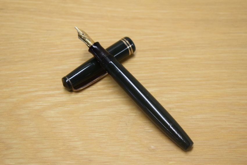 A Parker Victory button fill fountain pen in Green with two narrow cap bands having Parker 14K Pen N nib