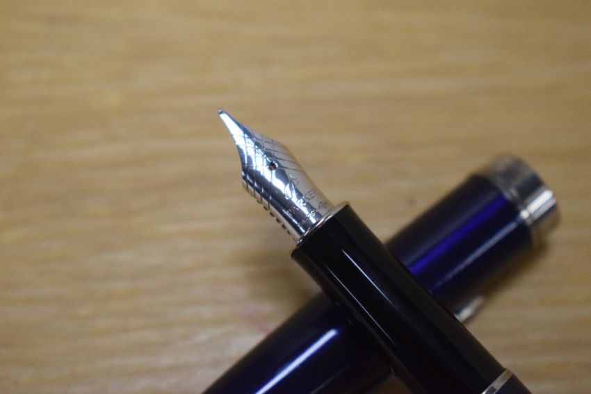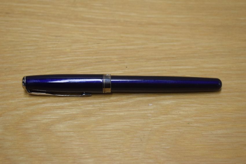 A Parker Sonnet converter fill fountain pen in Laque Dark Blue with silver trim having Parker 18K 750 nib.
