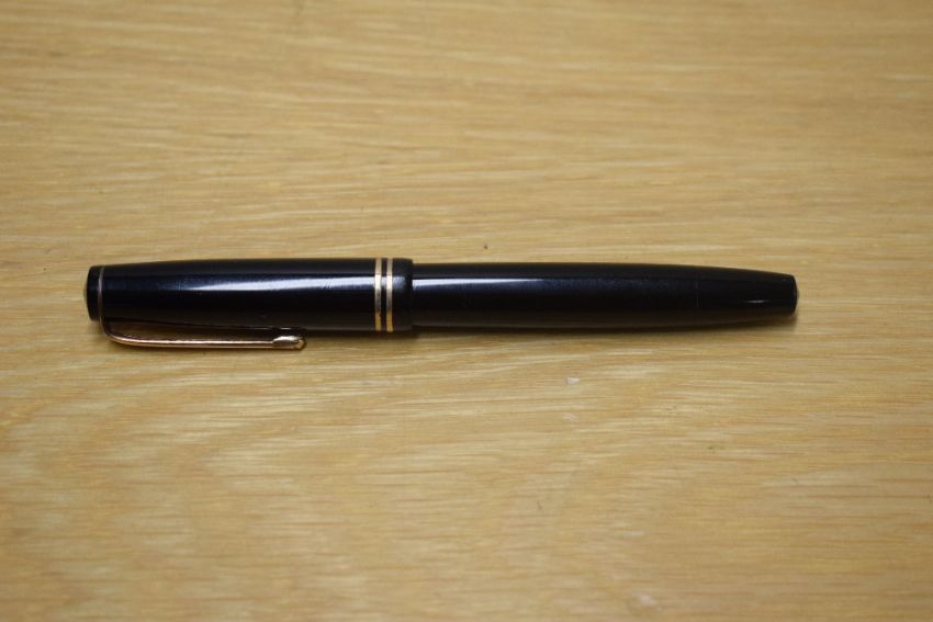 A Parker Victory MKIV button fill fountain pen in Black with to narrow cap bands having Parker 14K Pen N nib