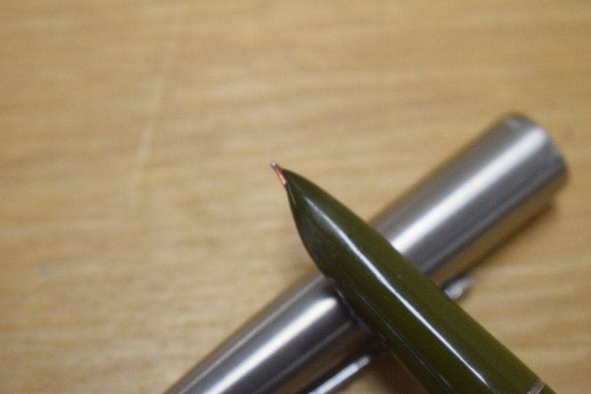 A Parker 51 aerometric fill fountain pen in Olive Green with lustraloy cap