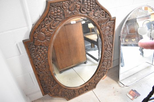 A carved oak wall mirror, having grapevine decoration, approx 82 x 106cm