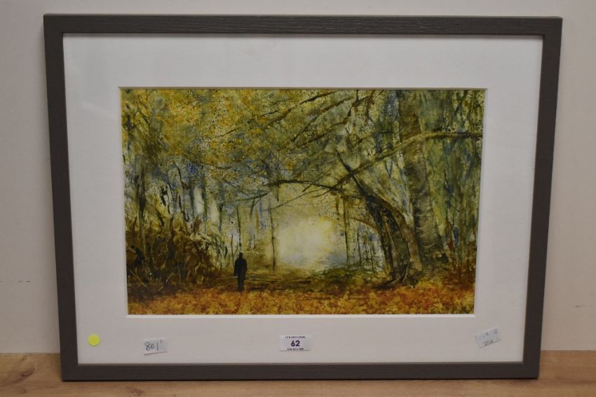 Attributed to J Burgess (contemporary) watercolour 'A Man in Autumn' within a white card mount and grey painted frame, under glass 25.5cm x 38.5cm & 41cm x 54cm overall.