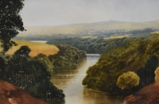 Local interest* artist unknown, pleasant contemporary watercolour 'River Eden, North of The Howgills' unsigned, entitled in pencil lower left, withina washline card mount and moulded gilt frame, under glass 22cm x 33cm & 45cm x 55cm overall.