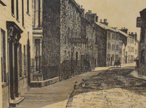 Local interest* After Alfred Wainwright (British 1907-1991) two monochrome prints 'Stricklandgate Kendal' and 'The County Mews Kendal' each signed in ink lower right, each framed under glass, largest 31.5cm x 36cm overall.