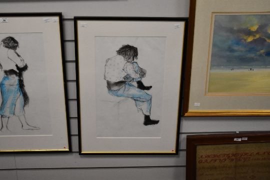 K Alphen (20th/21st century) pastels, a pair of figural studies, each signed lower right, within a card mount and slender ebonised frame, under glass/perspex 54cm x 32cm & 73cm x 50cm overall.