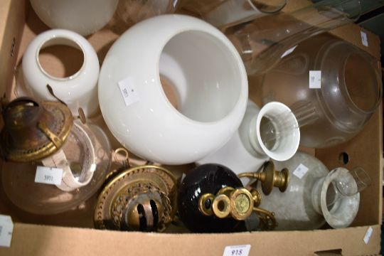 A selection of oil lamp spares including shades, chimneys and chambers etc