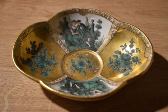 A Meissen scalloped dish having classical figural and floral design