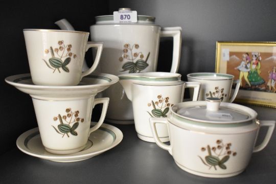 A Royal Copenhagen tea service decorated with foliage and gilt edging on an ice white ground, makers mark to base, pattern 884, 9481, (14).