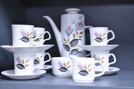 A 1960's J & G Meakin Studio coffee set, comprising coffee pot, six cups and saucers, sugar & cream, each with floral design, printed marks to base
