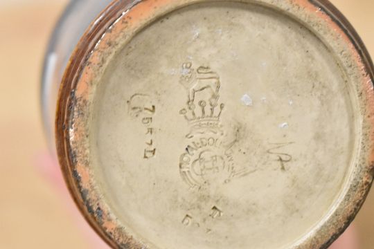 A Royal Doulton Lambeth ceramic vase of lobed form decorated with shepherd and flock in landscape, impressed marks to base, h25cm