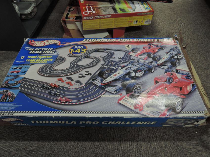 Hornby Micro Scalextric Sets, Pro Driver, Transformers, Scalextrix Sport Maserati Challenge and Hotwheels Formula One Challenge Set, all boxed (4)