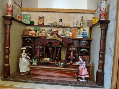 Miniature Dolls House Display, Vintage Chemist Shop, 56cm x 45cm
