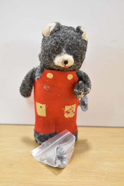 1950's/60's Japanese Clockwork Bear with bell, missing balloons