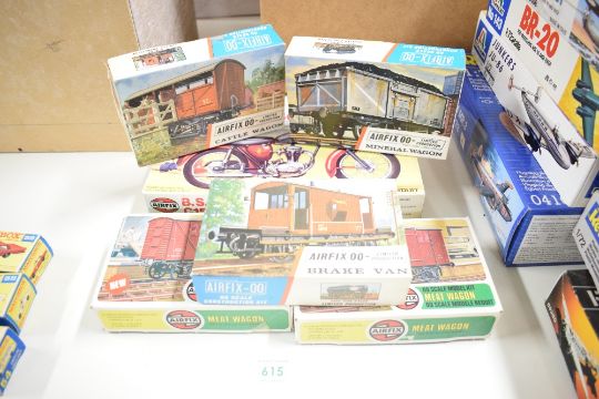 1970's Airfix 1:72 scale Plastic Kits, BSA 250cc C15, Brake Van, Mineral Wagon, Cattle Wagon, Meat Wagon x2, all in original boxes and appear unmade and complete (6)