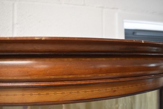 An Edwardian dispplay cabinet having bowed centre section, width approx. 122cm, condition generally good, taope now removed , some light residue marks, a few surface marks (see additional pictures) key present