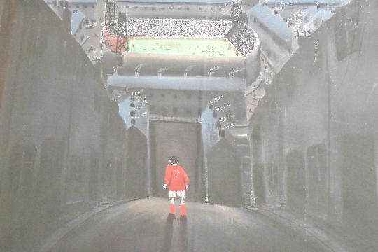 After Mackensie Thorpe (British b.1956) limited edition colour print 'The Boy that didnt get a Ticket' created to commemorate the Game of Life exhibition 2003, signed, entitled and numbered 169/495 in pencil to margin, certifivate of authenticity attached verso, within a stepped card mount and modern silvered frame, under glass 82cm x 93cm & 113cmx 123cm overall.