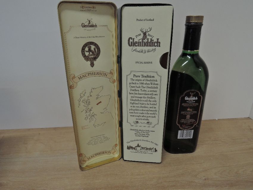 Glenfiddich Macpherson Clan Single Malt Pure Malt Scotch Whisky, 40% vol, 750ml, in Macpherson Clan tin with inner card inset present