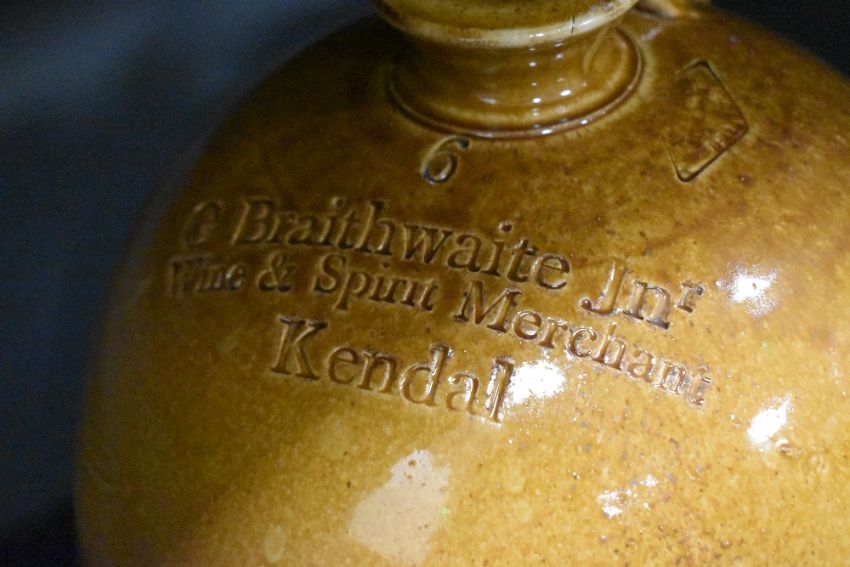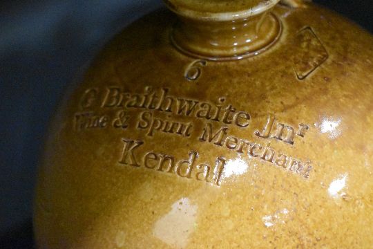 A large stoneware flagon having impressed marks for 'G Braithwaite Jn Wine & Spirit Merchant Kendal', h52cm